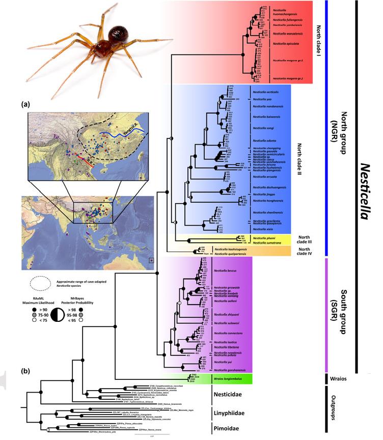 必威精装版app西汉姆联 李樞強研究組通過對亞洲東南部的洞穴小類球蛛屬(類球蛛科)蜘蛛進行研究,發現中新世中期的氣候巨變似乎是塑造亞洲半洞穴無脊椎動物生態差異的主要動力,並驅動了亞洲中緯度地區永久地下生物群的形成。該成果於2017年10月21日在國際著名期刊Global Change Biology上在線發表。