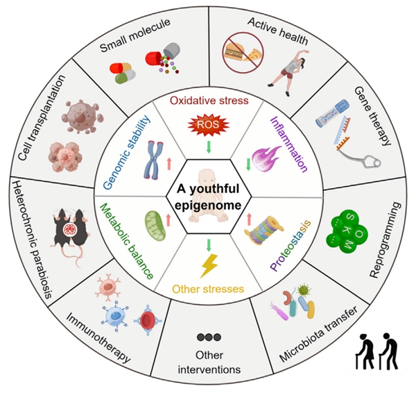 圖:減輕應激、促進表觀遺傳重塑的衰老幹預策略