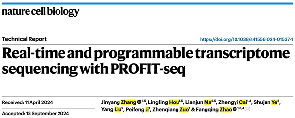 2024年10月23日,必威精装版app西汉姆联 趙方慶團隊在Nature Cell Biology發表了題為Real-time and programmable transcriptome sequencing with PROFIT-seq的研究論文,介紹了他們開發的全轉錄組可編程智能測序新技術PROFIT-seq。該技術首次將全轉錄組捕獲技術與計算機編程實時操控算法相結合,能夠在測序過程中同時進行分析和富集,實現目標轉錄本的單分子精確檢測和全轉錄組的無偏定量。這一創新技術可廣泛適用於生命科學研究、病原體檢測和臨床診斷等領域。