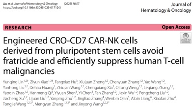 王金勇團隊開發多能幹細胞來源CRO-CD7 CAR-iNK細胞:避免自相殘殺,延長體內續存、有效抑製T細胞腫瘤
