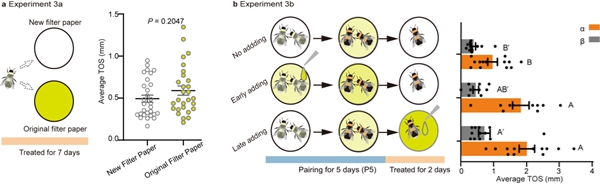 研究者在單獨飼養的工蜂中回補這類化合物,發現僅憑化學信號並不能激發其生殖。進一步在打鬥行為發生前後分別添加信息素回補,結果顯示兩種時序均能誘導工蜂生殖,說明信息素的感知時機與打鬥行為的發生順序並不固定,二者協同作用才是關鍵。