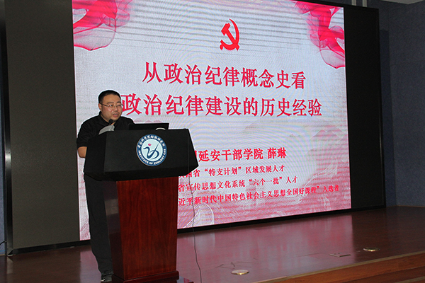 中國延安幹部學院副教授、政治學博士薛琳作黨課報告