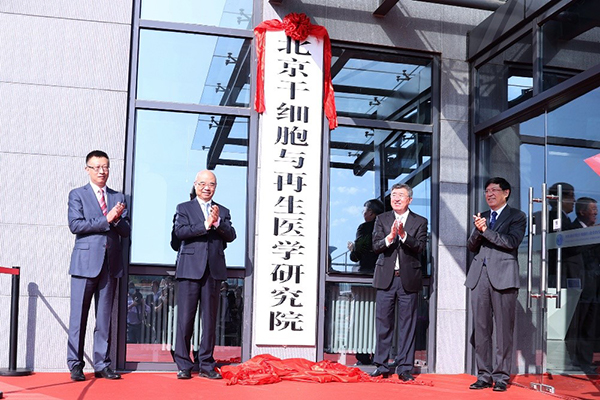 中科院副院長相裏斌、北京市副市長隋振江、中科院副秘書長周琪、北京市科委主任許強為幹細胞研究院揭牌