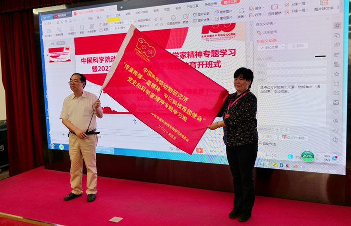 5月18日,教育實踐活動開班儀式在四川綿陽中國工程物理研究院黨校(鄧稼先幹部學院)舉行。中物院黨校(鄧稼先幹部學院)常務副校長範植開出席並致辭,介紹了中國工程物理研究院的曆史沿革,簡要講述了鄧稼先、王淦昌、於敏等著名科學家和科研人員在中物院、“兩彈城”隱姓埋名,為祖國“兩彈一星”事業做出重大貢獻的動人事跡,闡釋了“熱愛祖國、無私奉獻,自力更生、艱苦奮鬥,大力協同、勇於登攀”的“兩彈一星”精神。動物所教育實踐活動領隊、黨委副書記、紀委書記楊俊成在開班式上講話,對中物院黨校(鄧稼先幹部學院)的精心組織和熱情保障表示衷心感謝。他要求,參加教育實踐活動的全體同誌要靜下心來深入學習黨的曆史,深刻感悟“兩彈一星”精神的豐富內涵,大力弘揚老一輩科學家精神,對標踐行老一輩共產黨人的崇高境界,進一步錘煉自身黨性修養。開班式上,範植開同誌代表中物院黨校向動物所專題學習班授班旗,教育實踐活動正式拉開帷幕。