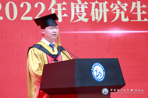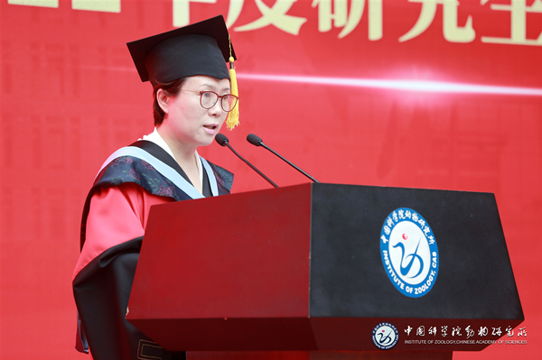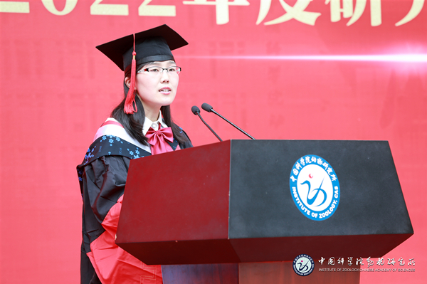 博士生高素偉代表全體畢業生,感謝辛勤培育、指導研究生的導師。她回望漫漫求學路,山高水長,師恩難忘。為實現遠大的科研理想和抱負,大家從祖國的五湖四海相聚必威在线网址 ,研究所廣場銀杏林的四季更替、寒夜書香永遠定格在回憶的櫥窗。這是一場知行合一的曆練,更是一場突破自我的修行,讓莘莘學子體會到了青春和成長。她祝福大家帶上感恩的心踏上新的征途,散落天涯仍各自發光。