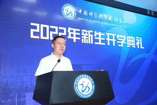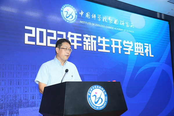 在全體師生齊聲唱響國歌後,開學典禮正式啟動。詹祥江發表了熱情洋溢的歡迎辭。他首先代表動物所全體師生歡迎新生的到來,並與在場師生一起回顧了中國科學院和必威在线网址 作為國家戰略科技力量作出的曆史貢獻。他指出,動物所建所90多年來,一代代優秀科學家在為國家科技事業做出重要貢獻的同時,留下了寶貴的精神財富,生動詮釋了科學家精神;動物所一流的師資隊伍和科研設施,給同學們搭載了成長的舞台,創造了優越的學習科研環境。他對新生們提出了三點希望:希望同學們樹立遠大理想、胸懷報國之誌;追求卓越,勇於創新;融入團隊,在合作中成長。最後,他祝願同學們從動物所走出去的時候,能成為動物所、成為科學院,乃至成為我們國家民族的驕傲。