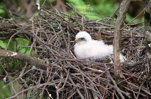 雀鷹的幼鳥在巢裏等待雙親喂食